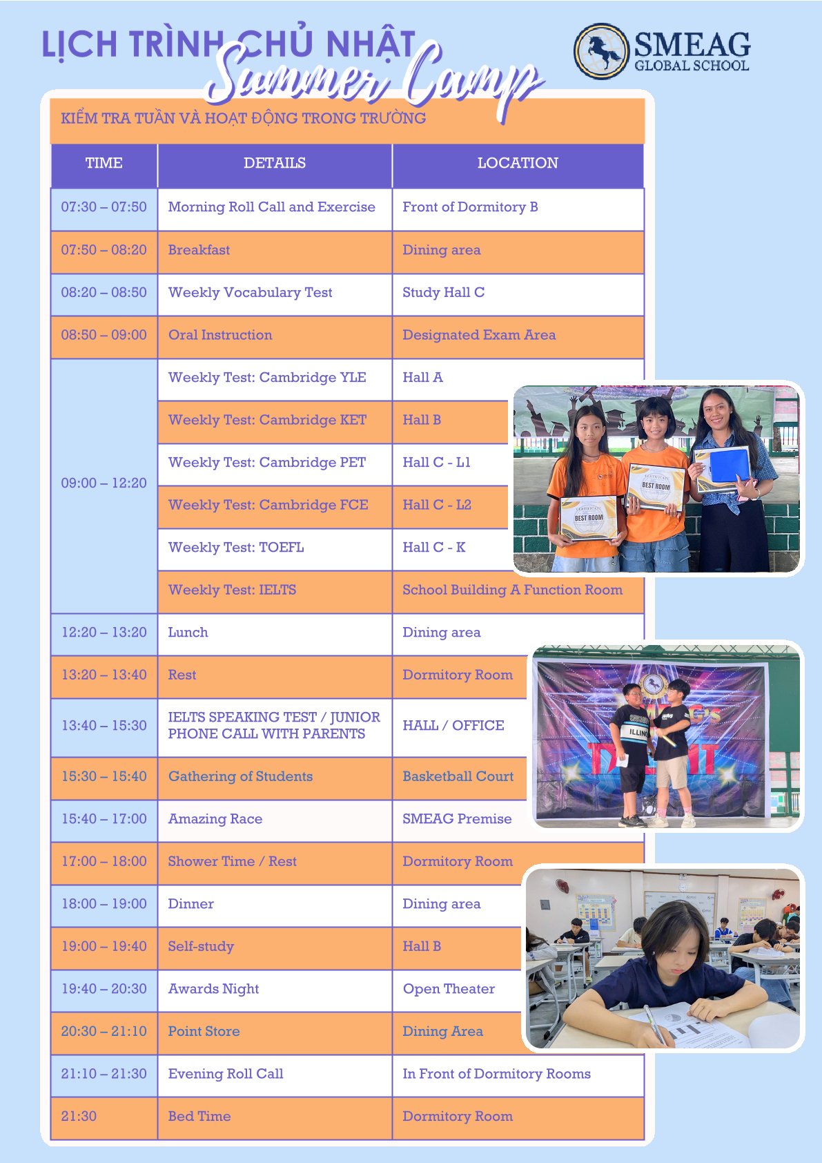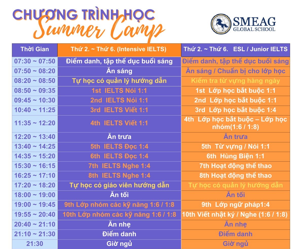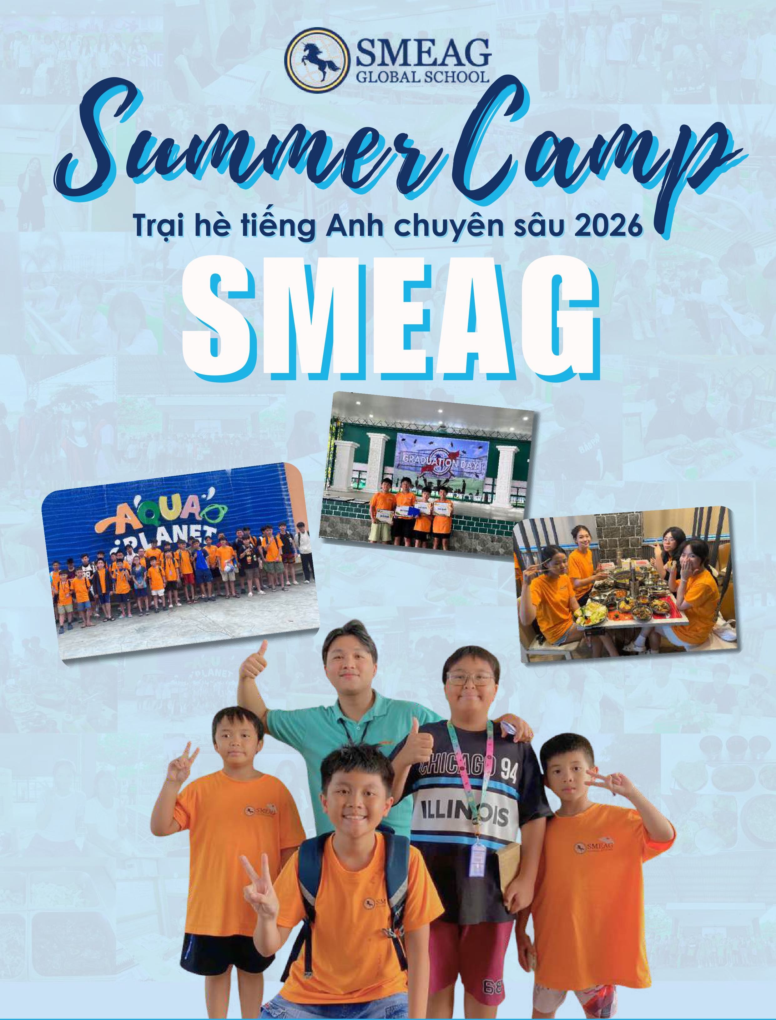 SMEAG là trường Anh ngữ lâu đời và rộng lớn bậc nhất Philippines. Các chương trình Trại hè của trường thu hút nhiều học viên quốc tế đến từ nhiều quốc gia như Việt Nam, Nhật Bản, Hàn Quốc, Mông Cổ,…Năm 2026, Trại hè Anh ngữ SMEAG được tổ chức tại Tarlac với nhiều hoạt động thú vị kết hợp chương trình học tập bài bản sẽ giúp các em trải qua một mùa hè đáng nhớ nhất.
