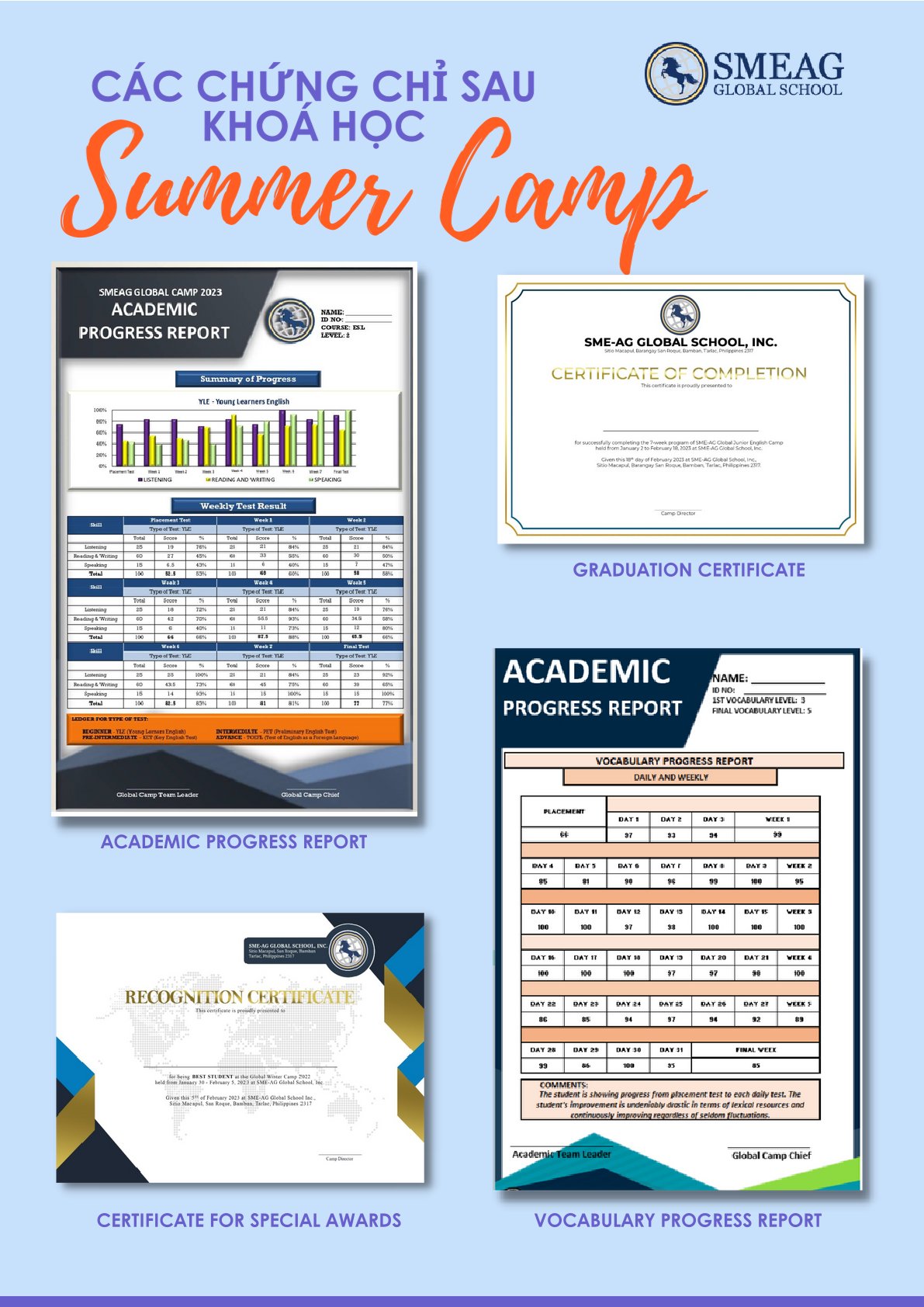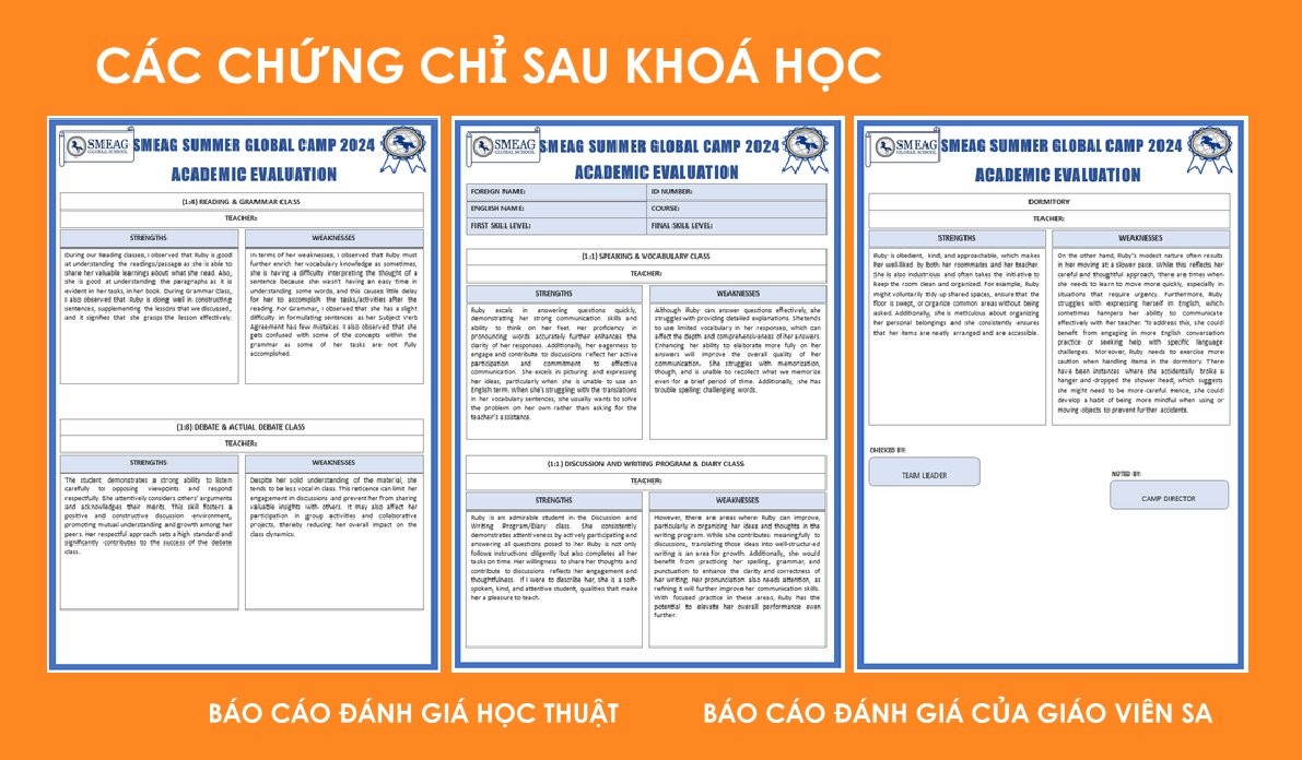 ⭐ CÁC CHỨNG CHỈ SAU KHÓA HỌC SUMMER CAMP