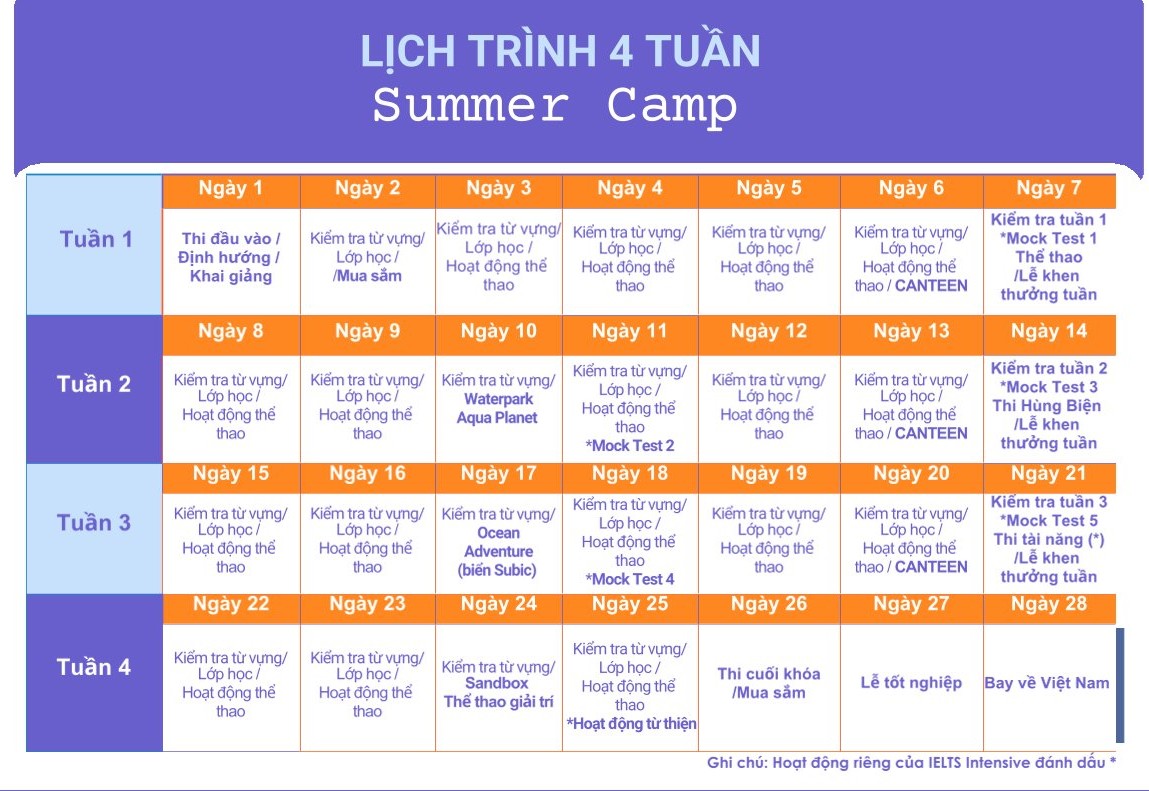 ⭐ LỊCH TRÌNH 4 TUẦN – SUMMER CAMP