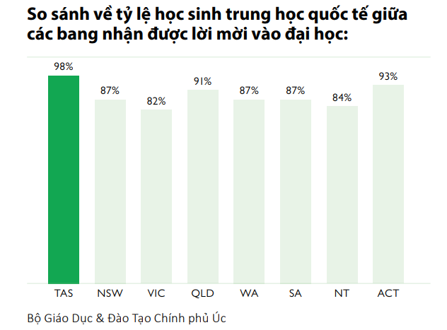 Hơn 97% số học sinh tại các trường công lập bang Tasmania là học sinh địa phương. Điều này giúp cho Tasmania trở thành một nơi hoàn hảo cho học sinh quốc tế phát triển các kỹ năng tiếng Anh và có những trải nghiệm đích thực về cuộc sống ở Úc.