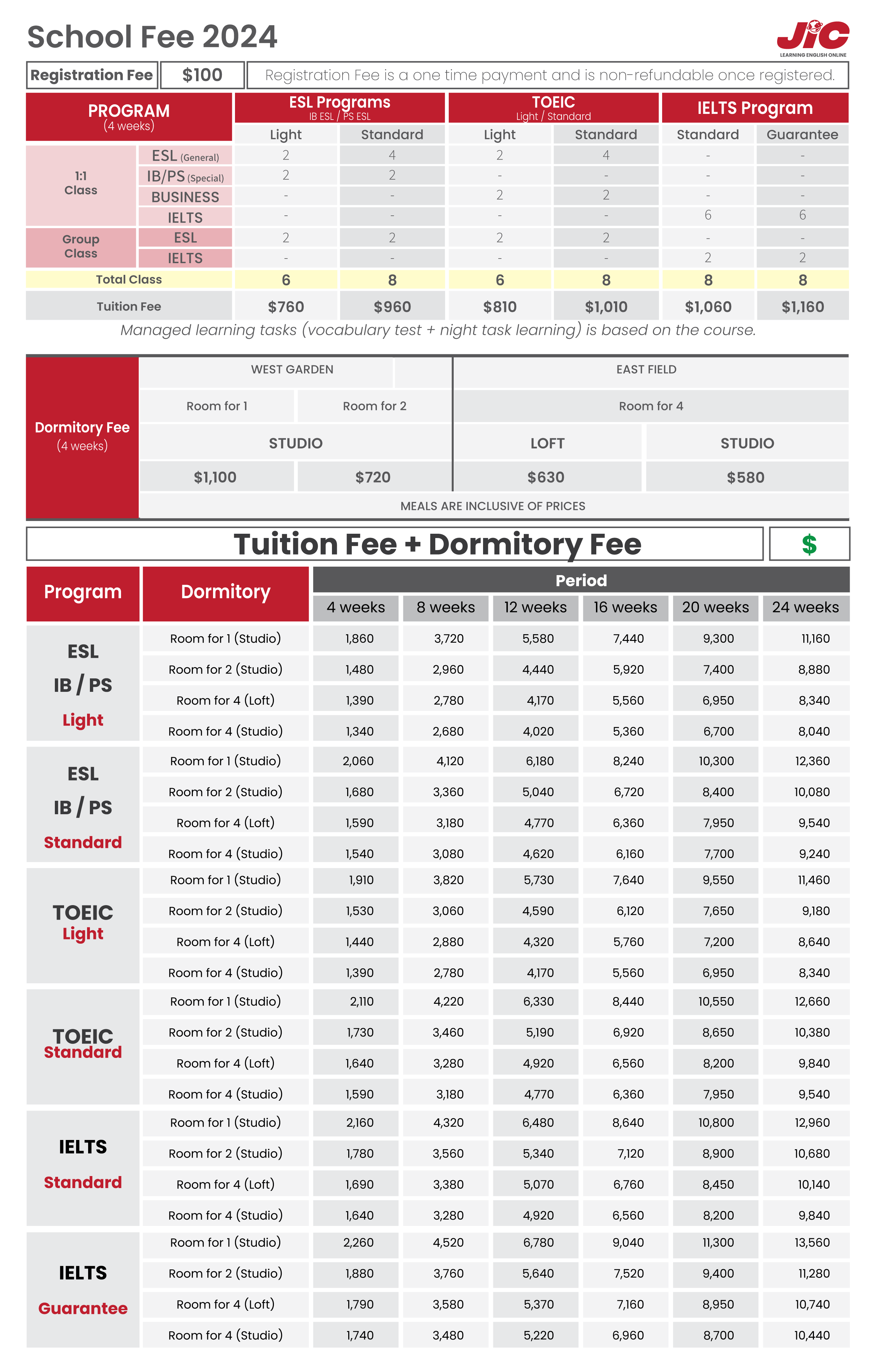 | Khoá học | Intensive Basic ESL, Power Speaking ESL, TOEIC, IELTS, Working Holiday |