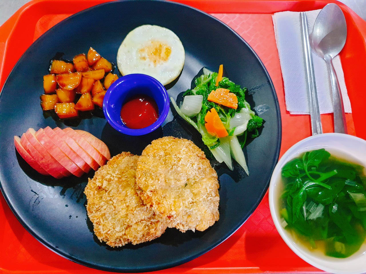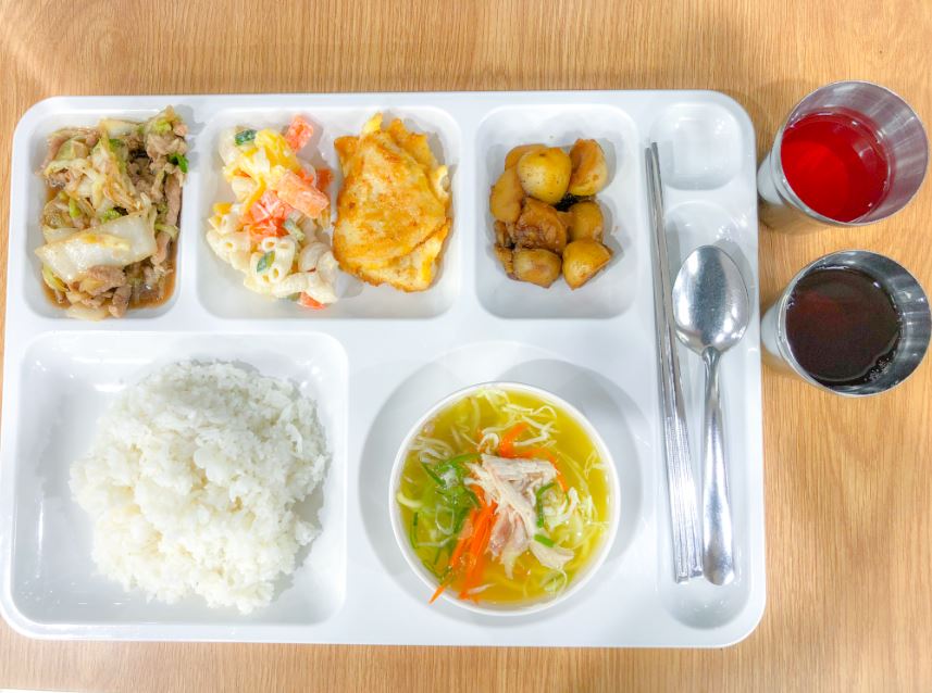 Một suất ăn của học viên có đầy đủ các món. (Nguồn: Pines International Academy)