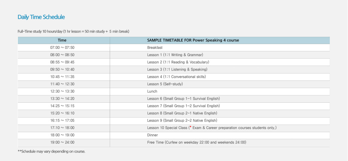 Các môn học tại CELLA Premium được tổ chức theo ý nguyện học viên, do đó rất phù hợp cho những bạn muốn tập trung vào những lĩnh vực cụ thể hay tập trung vào cải thiện những điểm yếu. Thế mạnh của trường là luyện Nói chuyên sâu trong thời gian ngắn rất thích hợp cho những học viên không sắp xếp được nhiều thời gian học tập tại Philippines, bởi vì thay vì học một ngày 4 - 5 tiết 1:1 mỗi ngày như tại một số trường khác thì tại CELLA Premium học viên được học đến 6 tiết 1:1 mỗi ngày.